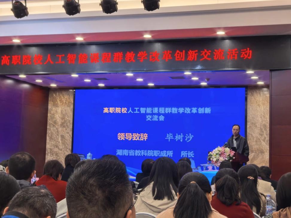 10月25日,我校联合承办的高职院校人工智能课程群教学改革创新交流活动在湖南富丽华大酒店顺利举行。活动汇聚了来自全国多所高职院校、出版社及企业的专家学者,共同围绕人工智能课程群建设、人工智能赋能教学资源开发、教材一体化建设等议题展开深入交流与探讨。